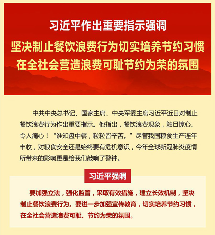 宣傳和貫徹落實(shí)習(xí)近平總書記對制止餐飲浪費(fèi)行為重要指示精神